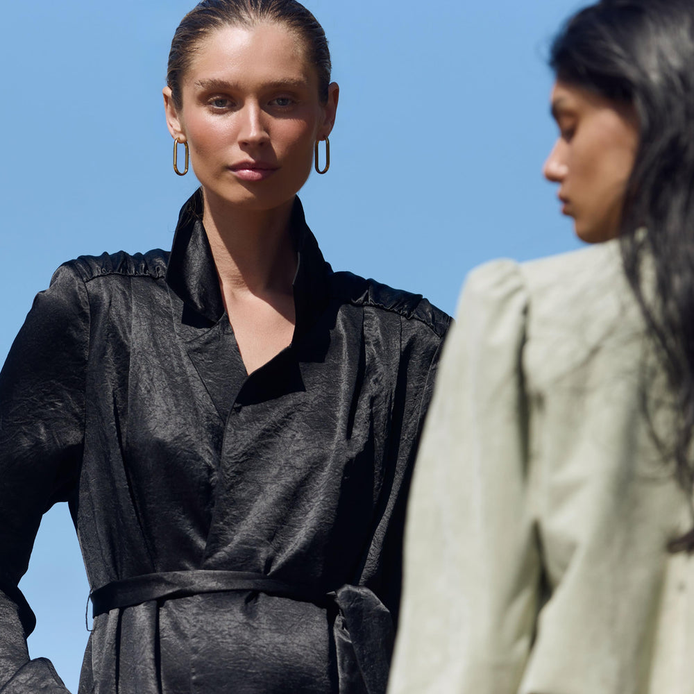 From fluid silks to softly textured crepes and satins, every piece is thoughtfully crafted in fabrics chosen for their comfort, longevity, and luxurious finish.